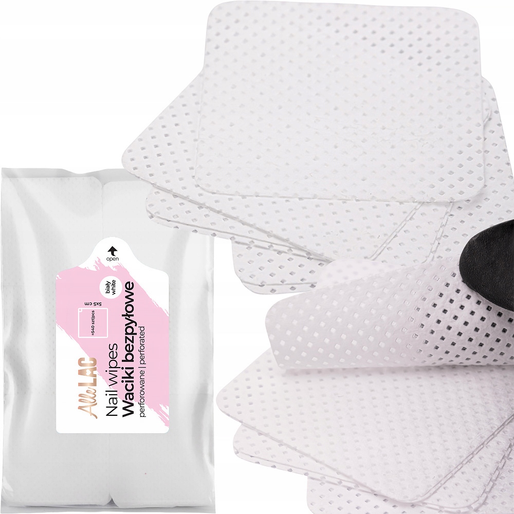 Waciki bezpyłowe z perforacją (dziurkami) zapewnią czystość podczas pracy. Ich równa, miękka struktura absorbuje płyny wykorzystywane do pracy z paznokciem. Są nie tylko wygodne w użyciu, ale i wytrzymałe - nie strzępią się i nie rozwarstwiają. Nie pozostawiają pyłków, kłaczków i mikro włókien na przecieranej powierzchni.